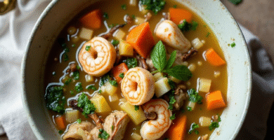 Receta de Cock-a-Leekie Soup con Mariscos de Orkney