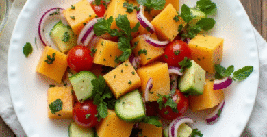 Receta de Salata de Melón de Kavala con Ensalada de Hierbas Griega