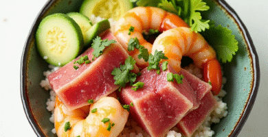 Receta de Linguiça de Frango com Salada de Frutas Tropicales