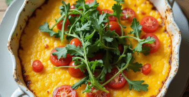 Receta de Polenta al Forno con Salsetta y Rúcula de Varenna, Italia