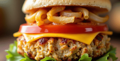 Receta de Hamburguesa de Pollo con Empanadas de Cebolla y Jengibre, inspirada en la Aleación de Sabores de Moline, Illinois