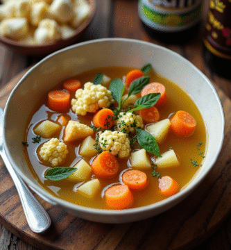 Receta de Sopa de Queso y Pimiento con Galletas de Queso Pimiento