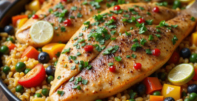 Receta de Trucha Arco Iris a la Mantiq Paella con Ensalada de Frutas