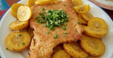 Receta de Pescado Frito con Patacones, típica de la Costa Occidental de Panamá