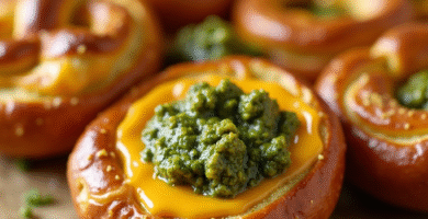 Receta de Pretzel Bites con Cheddar y Pesto