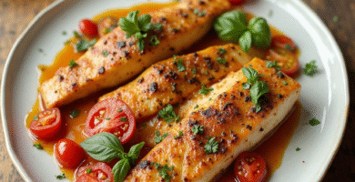 Receta de Filete de Trucha a la Mínima con Salsa de Tomates y Hierbas Provenzales