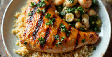 Receta de Pollo a la Delaware, con Salsas de Mariscos y Arroz Pilaf