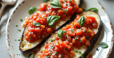 Receta de Tostado Wensleydale y Berenjena con Salsa de Tomate para York, Inglaterra