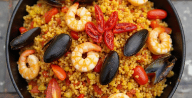 Receta de «Sheepshead Bay Seafood Paella» (Paella de la Sheepshead Bay)