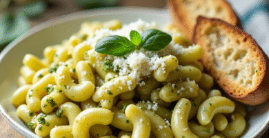 Receta de Macaroni al Pesto Toscanico (Macaroni Cacio e Pepe con un Toque Toscanico)
