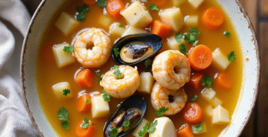 Receta de Cock-a-Leekie Soup con Mariscos Frescos