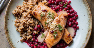 Receta de Trucha de Montaña con Salsa de Remolacha y Arroz Integral a la Parmesana