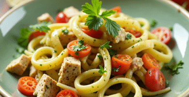 Receta de Tallarines al Pesto con Pollo y Verduras