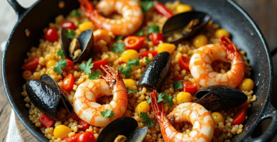 Receta de Paella con Tinta de Sepia y Vinos de Languedoc para una Cena Francesa