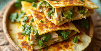 Receta de Quesadillas de Queso de Bola con Pollo en Salsa Verde