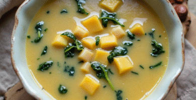 Receta de Sopa de Queso Džiugas con Espinacas y Alubias para Utena, Lituania