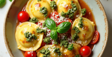 Receta de Ravioli al vino de Calabria con Pesto Genovese