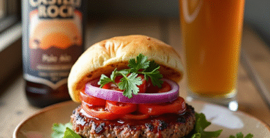 Receta de Hamburguesa Artesanal con Ingredientes Locales y Cerveza Castle Rock Pale Ale
