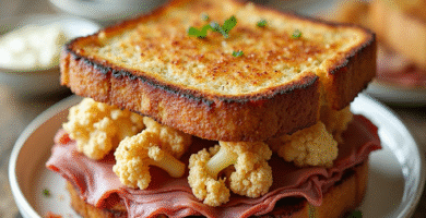 Receta de Sandwiches de Carne Ahumada con Coliflor y Tostadas Francesas