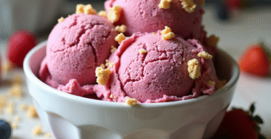 Receta de Helado de Frutas Locales con Crumble de Avellana para un Plato Refrescante