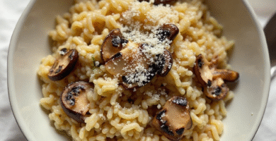 Receta de Risotto al Barolo con Champiñones Gialla, típico de Baveno, Italia