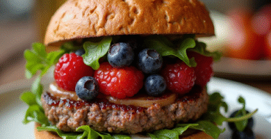 Receta de Sándwich de Hamburguesa Artesanal con Ensalada de Frutas y Aderezo a la Cerveza