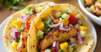 Receta de Tacos de Pollo con Salsa de Mango y Jícama, inspirado en la Tradición Chicana