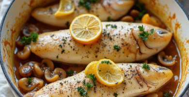 Receta de Trucha Arcoíris al Horno con Salsa de Naranja y Champiñones
