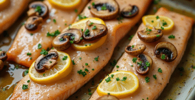 Receta de Trucha Arcoíris al Horno con Salsa de Limón y Champiñones para Idaho