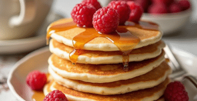 Receta de Pancakes de Maple Syrup y Frambuesas