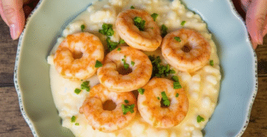 Receta de Camarones y Arroz Con Leche (Shrimp and Grits with a Sweet Twist)