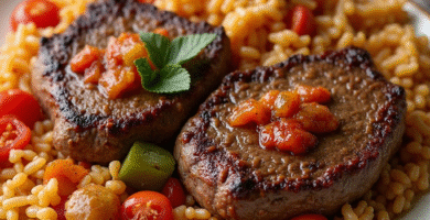 Receta de Chops de Carne de Res con Arroz del Medio Oeste de Kansas