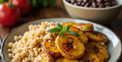 Receta de Plátanos en Tentación con Arroz y Frijoles Negros para el Darién, Panamá