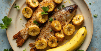 Receta de Salmón al Horno con Pan de Plátano y Pescado de Arrecifes (Jackfish)