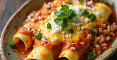 Receta de Enchiladas de Taos con Queso y Sopa de Frijoles Refritos