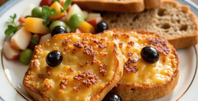 Receta de Queso Frito de Peacham con Salada de Frutas y Pan Integral