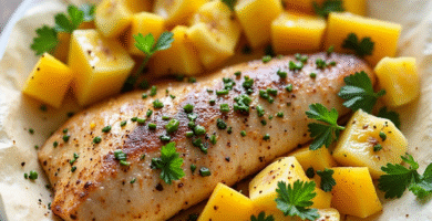 Receta de Filete de Trucha Arco Iris al Vapor con Ensalada de Frutas Tropicales