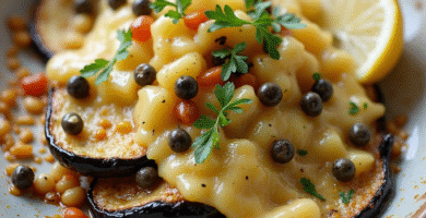 Receta de Queso de Fresno con Berenjenas y Alcaparras