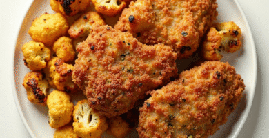 Receta de Pollo Frito Elsmere-Style con Coliflor al Horno