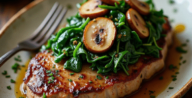 Receta de Steak al Horno con Espinacas y Champiñones
