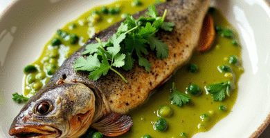 Receta de Trucha al Horno con Mole Verde de Wyoming