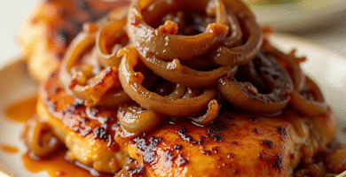 Receta de Bourbon Caramelized Onions y Chicken Breasts