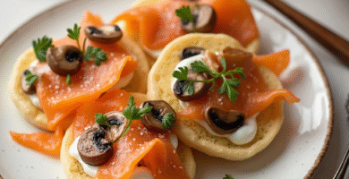 Receta de Blinis de Salmón con Champiñones Roscówianos