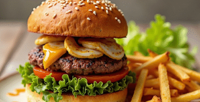 Receta de Hamburguesa de Ternera con Salsilla Artesanal Brookfields: Acompañada de Papas y Ensalada de Lechuga