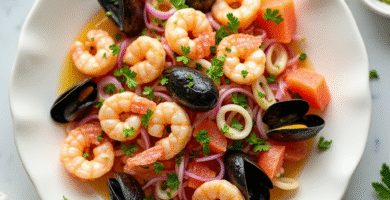 Receta de Ensalada de Mariscos con Jugo de Pomelo de Florida