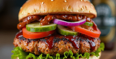 Receta de Sandwich de Hamburguesa de Boy with the Boot Beer y Toppings de Cerdo Asado