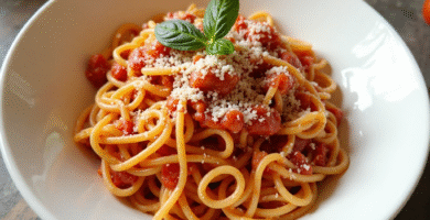 Receta de Pasta All’amatriciana con un toque de Sermoneta, Italia