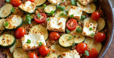 Receta de Queso de Cabra Artisanal al Horno con Zucchini y Tomates Cherry