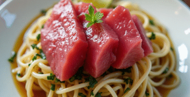 Receta de Sashimi de Atún Azul con Ensalada de Fideos Japoneses para Geraldton, Australia