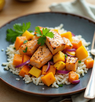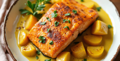 Receta de Salmón Tropical al Curry con Plátano Maduro y Coco